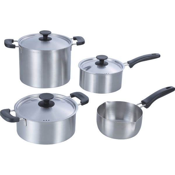 調理の際の目安になる、目盛付のお鍋のセットです。本体は、耐久性に優れたステンレス製で、IHクッキングヒーターやガスコンロなど、色々な熱源でご使用頂けます。