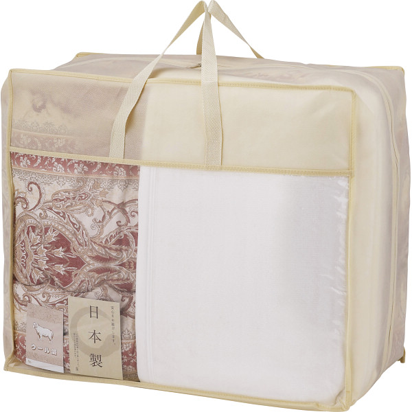 ウール50%混日本製掛けふとん&やわらか綿マイヤー毛布(毛羽部分)セット