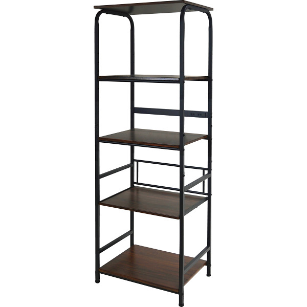 マット調に仕上げたブラックアイアンフレームと、シックな木目調棚板のコントラストがおしゃれなレンジラックです。便利なスライド棚(下から2段目)と2口コンセント付き(合計1500W)。上から2段目のみ可動棚(5cmピッチの5段階)。キッチン、サニタリー、リビング等いろいろな場所で利用できます。ガタツキを防止するアジャスター付き。