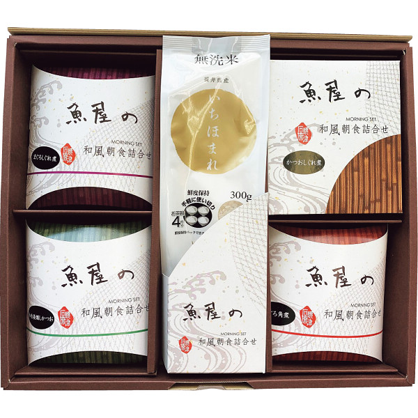 内容 ●いちほまれ無洗米300g・和生姜燻しかつお140g・まぐろ角煮110g・まぐろしぐれ煮120g・かつおしぐれ煮200g×各1 【アレルゲン:小麦】 【ボール箱入】