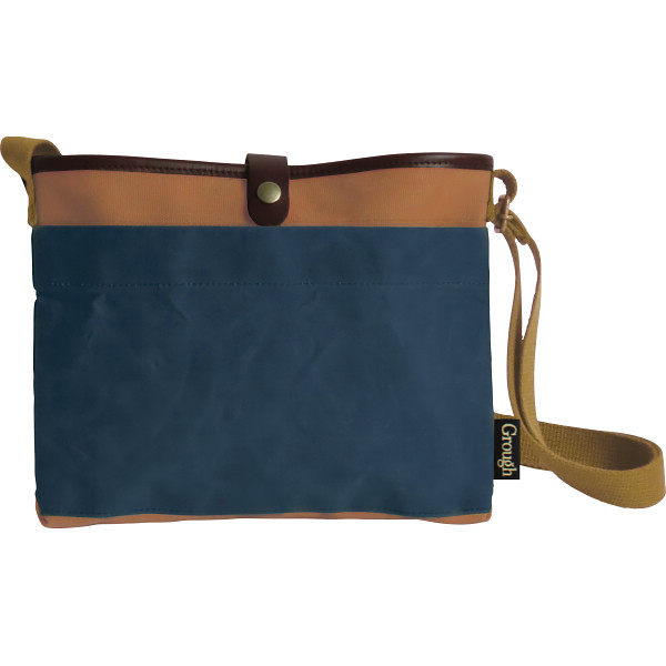 大きめの前ポケットが特徴のサコッシュです。パラフィン加工の帆布のポケットなので雨を弾きます。口周りとスナップボタンのレザーがアクセントでおしゃれです。