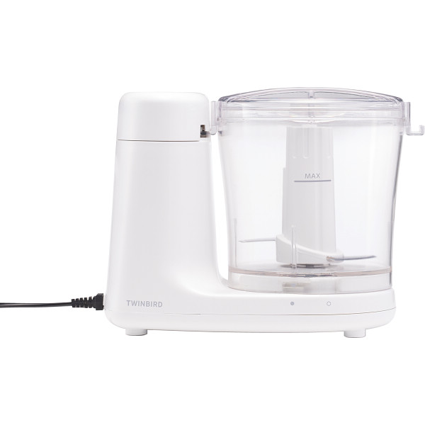 ■きざむ、まぜるの一台二役。料理の下ごしらえにかかる手間と時間を省きます。少量でも調理ができるので離乳食をつくる時にも便利です。スイッチを押している間のみカッターが回転し、フタをしないと作動しない安全設計。容器は取り外して丸洗いして頂けます。