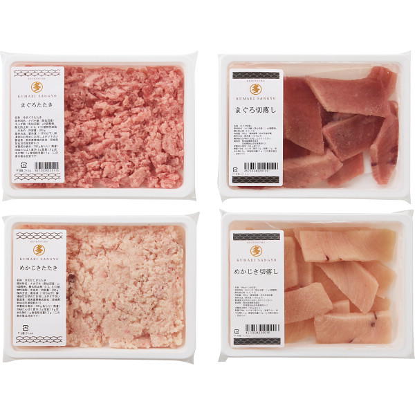 内容 ●マグロ切落し・マグロたたき・メカジキ切落し・メカジキたたき200g×各1(マグロ・メカジキ:宮城県産) 【賞味期限:14日】 【発泡スチロール】