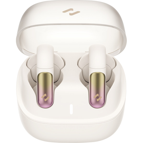 耳の外側に挟み込むようにして固定するイヤーカフ形状、耳の穴を塞がないオープンイヤー型のフルワイヤレスイヤホン。周りの音が聞こえるので、ながら聴きにおすすめ。耳に沿う形状記憶アームでしっかりとしたフィット感を実現。約12mmの大型ドライバーを搭載。片耳約5.5gの超軽量。専用アプリで数種のイコライザー設定でサウンドを自分好みにできる。