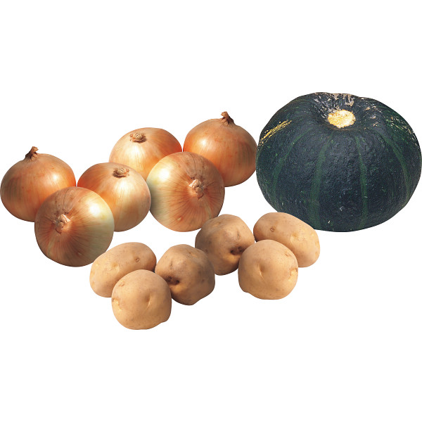 内容 ●男爵いもMサイズ×4kg、きたあかりMサイズ×4kg、玉ねぎLサイズ×3kg、南瓜Lサイズ1.5kg×1玉 【お届け期間:10月下旬~12月上旬】 【ボール箱入】