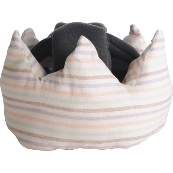 ハイハイ・よちよち歩きを練習中のベビーの為のヘルメットです。日常のケガや軽度の衝撃からベビーを守ってくれます。頭囲部は肌触りの良いガーゼ素材を使用し、中綿をたっぷりと入れているのでベビーの頭にしっかりフィット。王冠をモチーフにしたデザインがとっても可愛く小さな王様に変身できます。行動範囲が広がり目が離せない月齢時期の安全対策に最適です。信頼ある日本製で、手洗いができます。