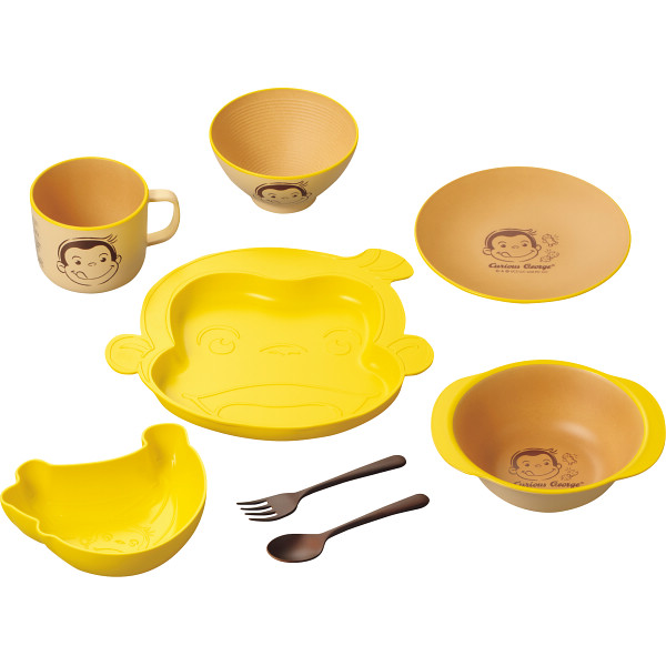 ほのぼのしたおさるのジョージ柄でユニセックスの子供食器です。軽くて割れにくい樹脂なので安心して使用できます。食洗機・電子レンジ対応なのでデイリーユースで大活躍してくれます。