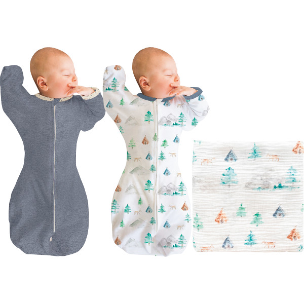 モスリンおくるみ1枚&夜泣き対策!スワドルサック2枚セット