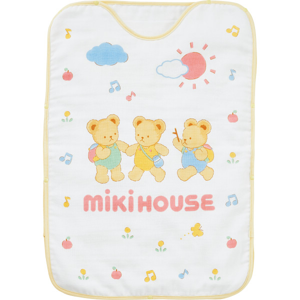 赤ちゃんの寝冷え対策や、お風呂あがりに便利なガーゼスリーパーです。かわいいミキハウスベア柄で、表裏の柄が異なる愛らしいデザイン。足元にもホックボタンが付いているのではだけにくく安心です。新生児から3歳頃まで長く着用いただけます。