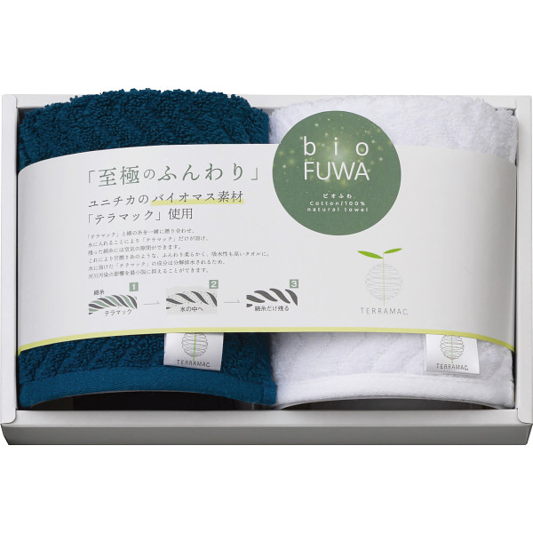 ユニチカのバイオマス素材『テラマック』を使用した、環境に配慮したタオルハンカチ。軽くて、ボリュームがあり、吸水性も抜群です。