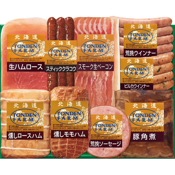 内容 ●燻しロースハム・燻しモモハム各300g、豚角煮160g、ピルカウインナー120g、荒挽ウインナー100g、スティッククラコウ(ソフトサラミソーセージ)80g、荒挽ソーセージ70g、スモーク生ベーコン(スライス)60g、生ハムロース(スライス)40g 【賞味期限:30日】 【アレルゲン:小麦】 【化粧箱入】