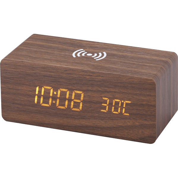 ワイヤレス充電機能付木製デジタルクロック