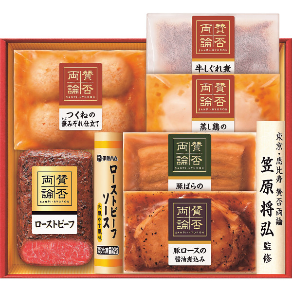 内容 ●賛否両論(ローストビーフ(もも)180g、つくねの蕪みぞれ仕立て180g、蒸し鶏の梅ジュレ仕立て150g、豚ロースの醤油煮込み・豚ばらの味噌煮込み各70g、牛しぐれ煮ごぼう55g)、ローストビーフソース(和風ゆず風味)60g 【アレルゲン:卵・乳成分・小麦】 【化粧箱入】