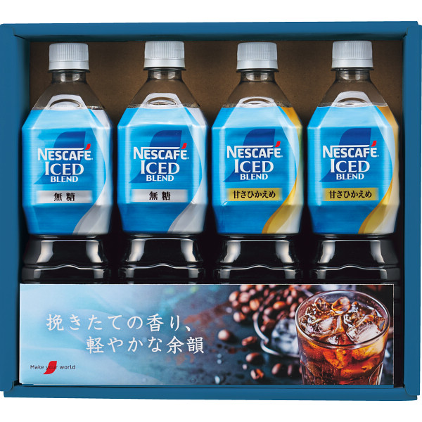 内容 ●ネスカフェ アイスブレンドボトル(無糖・甘さひかえめ)各900ml×各2 【化粧箱入】
