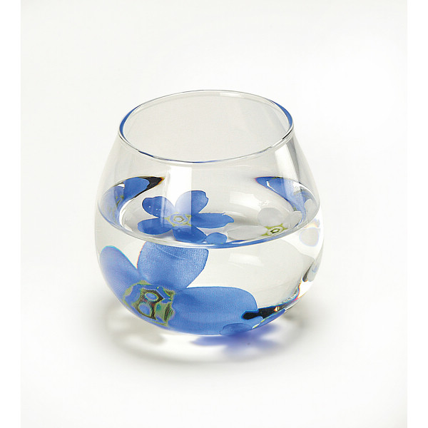 色鮮やかな花を浮かべた花手水をモチーフにしたゆらりグラスです。例えばお水を入れたグラスにアロマを入れ玄関に!空間を華やかにしてくれるアイテムにもなります。