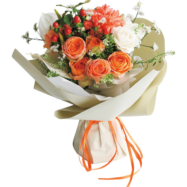 内容 ●カーネーション(オレンジ系)、ミニバラ、アンスリウム、小花、グリーン(ゼラニウム)など※お花の種類はお任せになります。※天候により花の大きさや色味の濃淡は多少写真と異なる場合がございます。 【ボール箱入】
