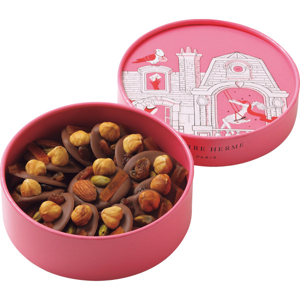 内容 ●オレンジピール・レーズン・ヘーゼルナッツ・アーモンド・ピスタチオ・ショコラオレ計130g●手提げ袋付 【賞味期限:60日】 【アレルゲン:乳成分・小麦】 【化粧箱入(巻のし包装不可)】