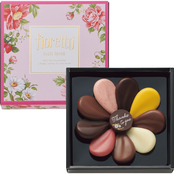 花びら型のプレーンチョコレートは、6種類の味わい。真ん中には「THANKS to YOU」のメッセージをプリントしたチョコレートを。