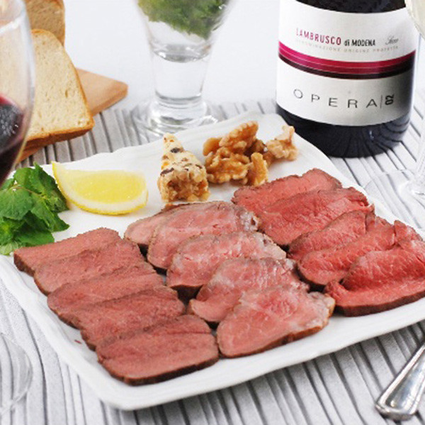 脂肪が少なく赤身ならではの味わいが楽しめるモモ、霜降りがしっかりと入り濃厚な味わいのサーロイン、きめが細かく柔らかい肉質が特長のヒレの3つの部位を、氷温熟成で旨みを引き出し、低温でじっくりと仕上げてローストビーフにしました。玉ねぎをたっぷりと使用したオニオンソースとの相性も抜群。それぞれの味わいをお楽しみください。