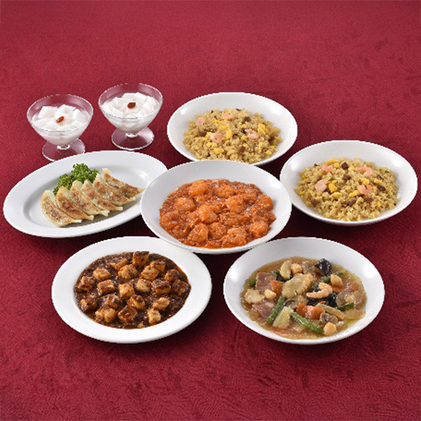 内容 餃子120g(6個入)×1、本格四川麻婆豆腐150g×1、乾焼蝦仁(エビチリソース)150g×1、本格八宝菜150g×1、ふっくら五目炒飯(200g×2)×1、杏仁豆腐500g×1※パッケージデザインが変更になる場合がございます。 【賞味期限:90日】 【アレルゲン:卵・乳成分・小麦・えび】 【袋入】