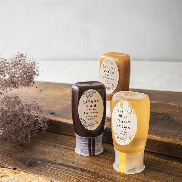 内容 からだに優しいアカシアはちみつ300g×1、はちみつとピーナッツでつくったピーナッツハニー250g×1、はちみつとカカオでつくったチョコレートハニー280g×1 【賞味期限:90日】 【アレルゲン:落花生(ピーナッツ)】 【袋入】