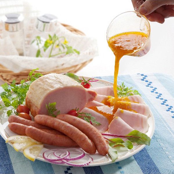 内容 ロースハムブロック280g、ロースハムスライス79g×2、あらびきウインナー130g、ベーコンステーキ100g、スモーク生ハム60g、ハム用ドレッシング140ml 【賞味期限:20日】 【アレルゲン:小麦】 【袋入】