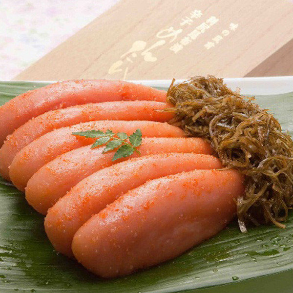 昆布が主役の辛子明太子、『筑前福岡昆布漬辛子明太子(無着色)』。幾重にも選別したたらこを、北海道産昆布の旨味を存分に引き出した調味液にじっくり漬け込み熟成させることによって、辛子明太子にまろやかな味わいが生まれます。また、明太子に添えられる昆布にも、ピリッと引き締まった辛味が加わり互いの素材を存分に引き出しあった辛子明太子に仕上がっています。