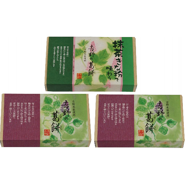 内容 吉野の葛餅(葛餅330g、黒蜜1袋、きな粉1袋)×2箱、抹茶きな粉で味わう吉野の葛餅(葛餅330g、抹茶きな粉3袋)×1箱 【アレルゲン:卵】 【袋入】