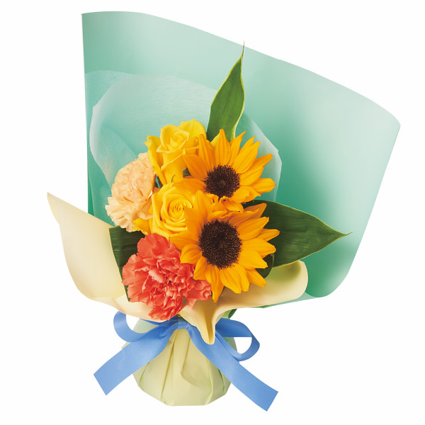内容 ●ひまわり2、バラ2、カーネーション2、ドラセナ●お手入れのしおり付 【ボール箱入】