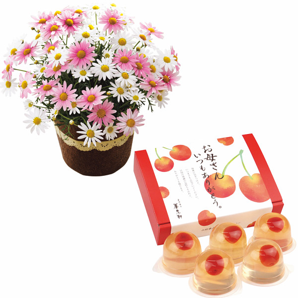 【母の日専用】山形県産さくらんぼのゼリーとマーガレット鉢植え5号のセット