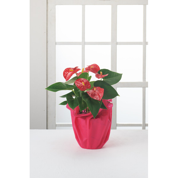 つやつやのハート型がかわいいアンスリウム。春から夏にかけて長く楽しめます。