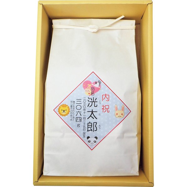 内容 ●三重県産結びの神(出生体重と同じ重さ)最大3,800g※お米がこぼれない形でお届けします。 【化粧箱入】