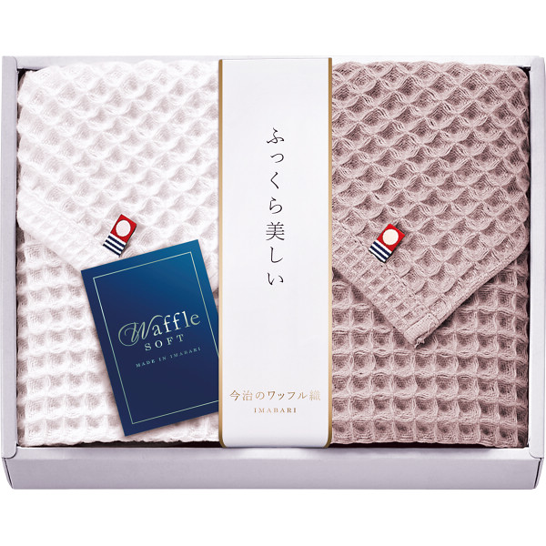 美しさと使い心地の良さを兼ね備えた、立体的な織柄の今治製タオルセット。「ワッフル織」と呼ばれるマス型のこの組織は、さらりとした肌触りと優れた吸水性が特長です。風合いと織目の美しさを損ねないよう、程よいバランスで設定した3種類の糸を使用。使っていくうちにボリュームが増して、ふんわりしていた感触が「ふっくら」に変わっていきます。使うたび、贅沢な気持ちにさせてくれるタオルです。