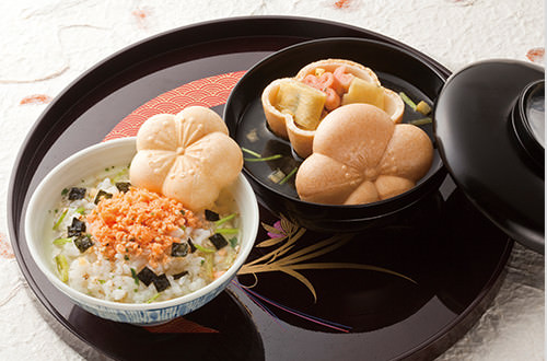 香ばしい最中種に滋味調整した生タイプの具材を詰合せしたお茶漬と京野菜を使用したお吸物を詰合せ。お茶・お湯を入れるだけで簡単に上品な京風お茶漬・お吸物になります。