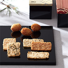 おかきの旨味に大切なことはお米にあるという考えのもと、丹精込めて育てたこだわりのもち米「新大正もち米」の一粒一粒を損なわないように精米から蒸し、成形、焼きまで職人がもち米と向き合い、最後は秘伝のタレで仕上げます。お米がもつ豊かな香り、腰の強さは絶妙な食感を生み、味や香り、食感にこだわる「通」の方に喜ばれています。