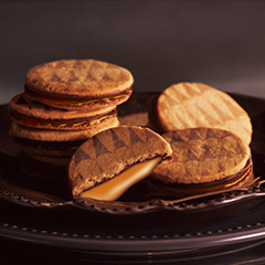 バター香るクッキー生地に、口どけのよいチョコレート。そして少し苦味をきかせたキャラメル。奥深いおいしさが口の中に広がります。